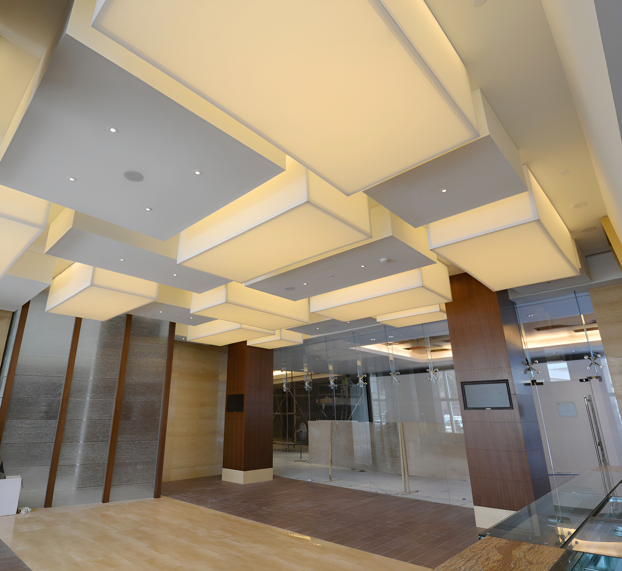 Pillar illumination using Iceil stretch ceiling combines. aesthetics and functionality seamlessly. By integrating LED lighting within stretch ceilings, pillars become not just structural elements but also dynamic lighting features.