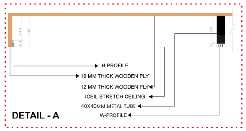 Boxing hides the edges of the stretch ceiling material, creating a clean and finished look. It conceals any imperfections or unevenness in the edges of the ceiling, enhancing the overall aesthetic appeal.